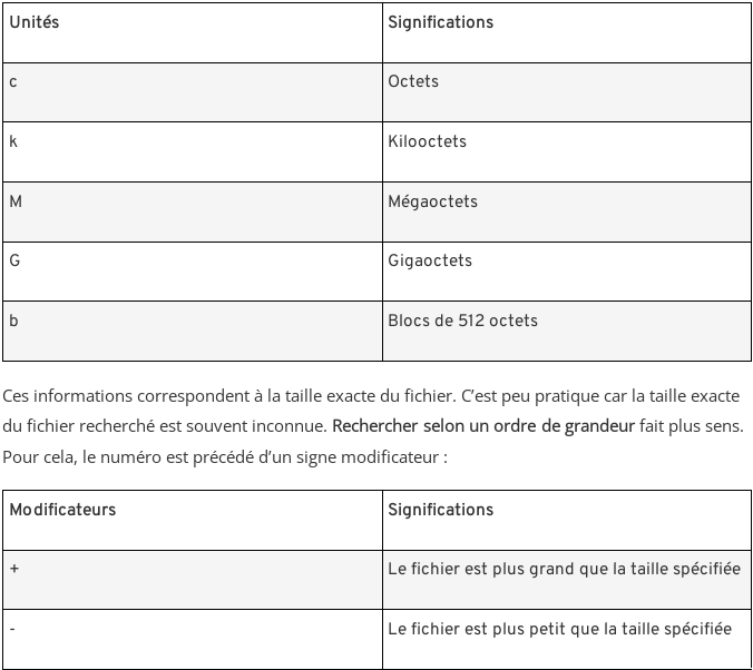La commande find suivante renvoie tous les fichiers d’une taille d’au moins 700 mégaoctets :